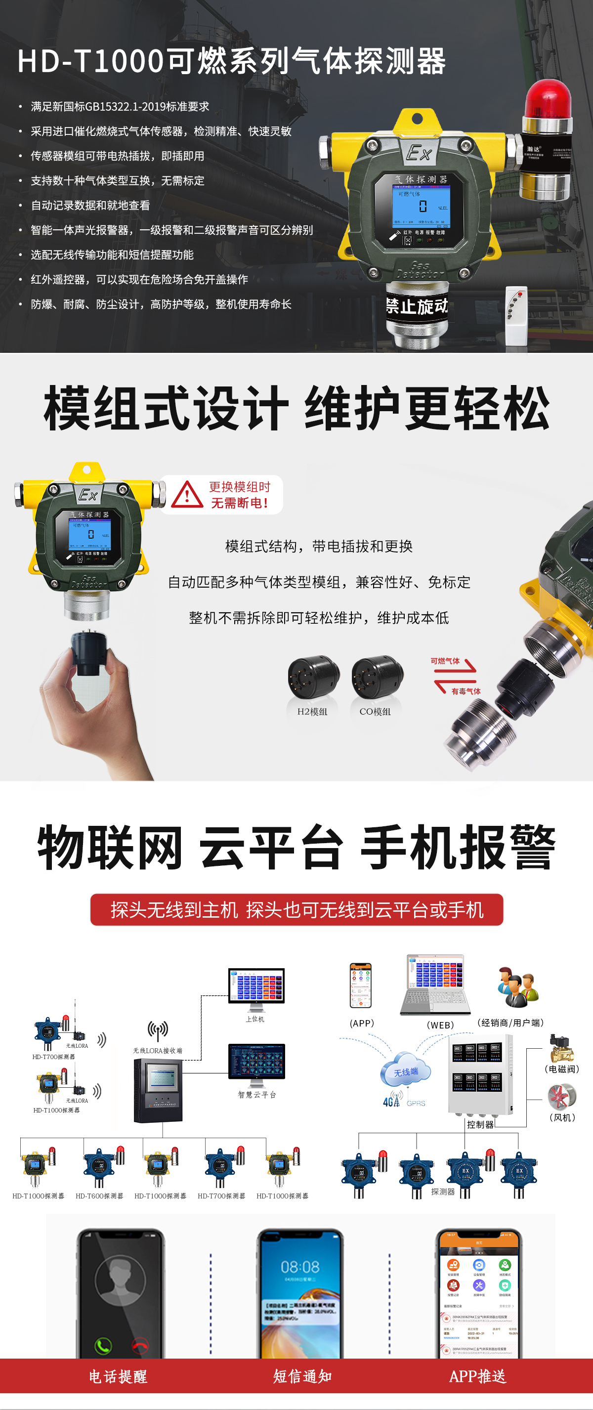 产品概述:T1000-EX分体式可燃彩屏探测器应用于现场24小时连续在线监测,现场液晶浓度显示和智能一体声光报警,传感器模组单元,可带电插拔,现场真正免标定,实现低维护成本,整机高防护等级,适用于各种危险场所和强酸强碱的腐蚀性环境。