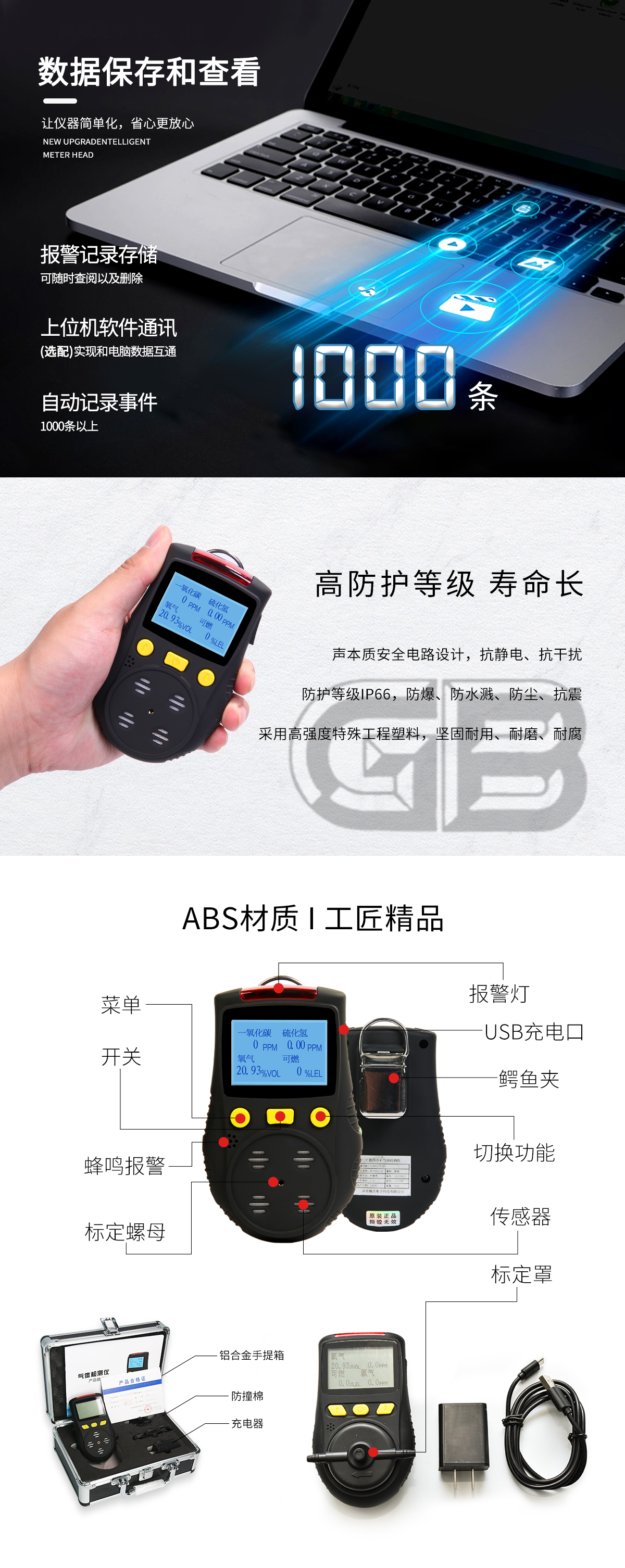 产品概述:HD-P900S系列便携复合式气体检测仪是一款外形小巧、低功耗、检测精准、操作简单的检测仪。新国标15322.2标准,功能全面,具有同时检测四种气体,自动记录事件,实时显示浓度、报警状态、电池电量等功能。广泛应用于石油、化工、焦化、钢厂、管网巡检、医药、环保、仓储等所有需要检测气体浓度的场合。